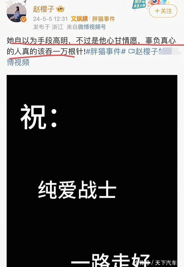 从赵樱子的发声来看,她是站在胖猫这一边的,哀怜他的碰到,为他的去世感到悲悼。 不外赵樱子发声后,并莫得赢得太多网友的认同,反而是好多网友在责怪她蹭热度。