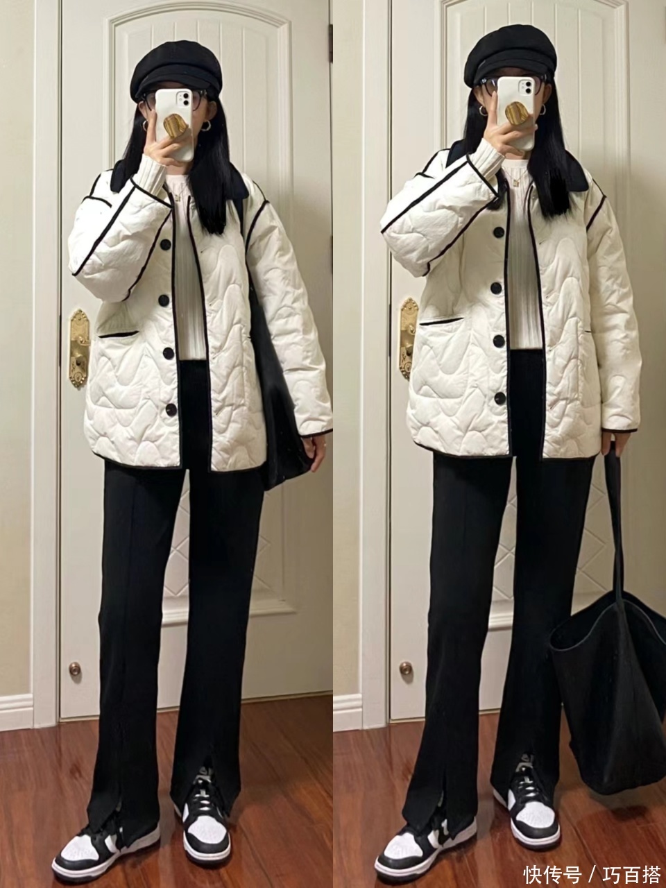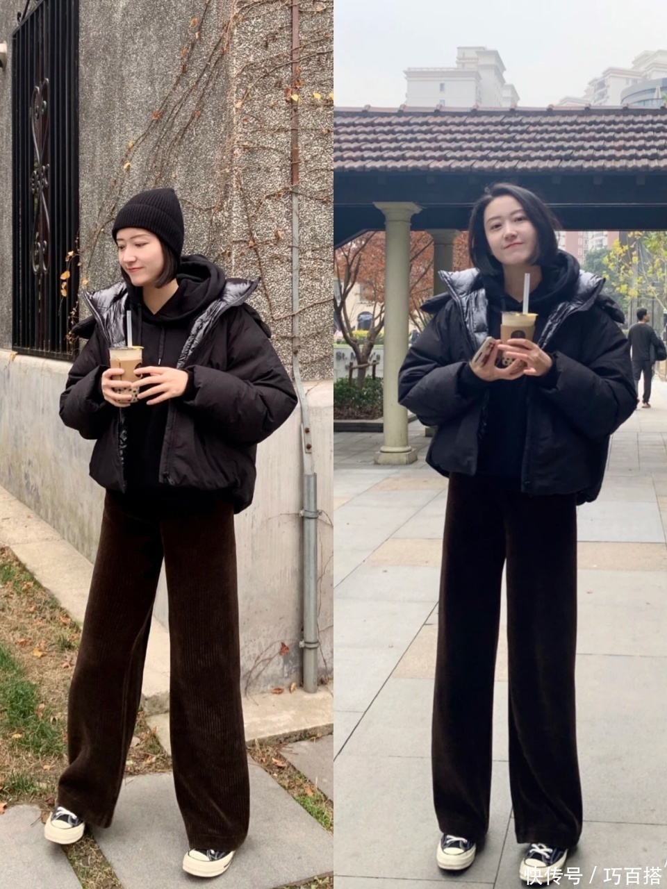 你不错像博主同样用玄色长裤搭配加长款外衣,也不错搭配超短款棉服,岂论是上松下紧、外松内紧仍是上短下长,在氛围感的呈现上,都不拉胯,天然玄色长裤不具备让东谈主一眼万年的智力,但举座造型如若没了它,会俄顷失去灵魂的。